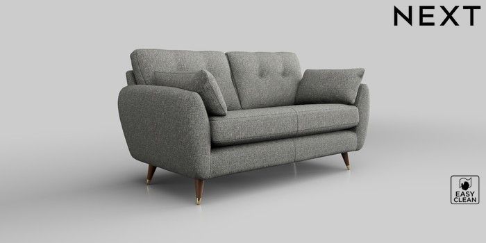 6.12.13 Buy Wilson Buttoned Back 2 Seater Sofa Chunky Boucle Easy Clean Mid Grey Low Retro Tapered Metal Cap - Mid from the Next UK online shop Click here to use our accessible website