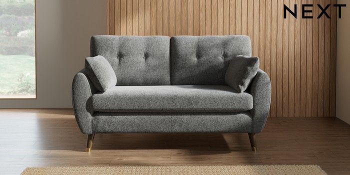 7.3.1 Buy Wilson Buttoned Back 2 Seater Sofa Chunky Chenille Dark Grey Low Retro Tapered Metal Cap - Mid from the Next UK online shop Click here to use our accessible website