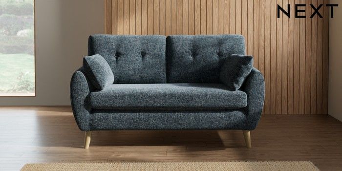 7.2.10 Buy Wilson Buttoned Back 2 Seater Sofa Chunky Chenille Dark Navy Blue Retro Tapered - Light from the Next UK online shop Click here to use our accessible website