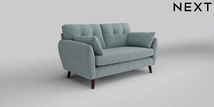 6.12.1 Buy Wilson Buttoned Back 2 Seater Sofa Chunky Marl Mid Blue Retro Tapered - Dark Brown from the Next UK online shop Click here to use our accessible website