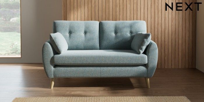7.2.10 Buy Wilson Buttoned Back 2 Seater Sofa Chunky Marl Mid Blue Retro Tapered - Light from the Next UK online shop Click here to use our accessible website