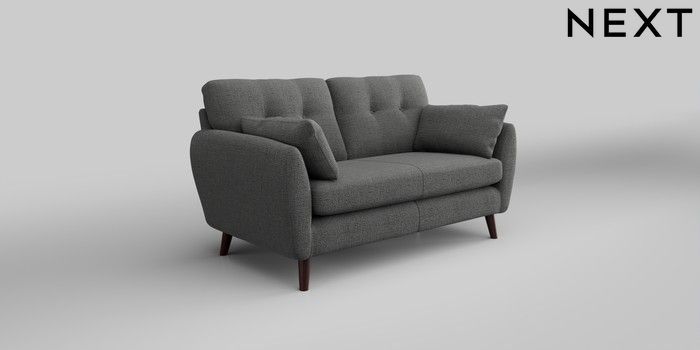 6.12.1 Buy Wilson Buttoned Back 2 Seater Sofa Chunky Texture Dark Grey Retro Tapered - Dark Brown from the Next UK online shop Click here to use our accessible website