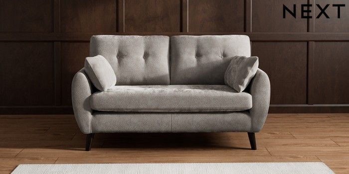 7.3.1 Buy Wilson Buttoned Back 2 Seater Sofa Distressed Velour French Grey Retro Tapered - Dark from the Next UK online shop Click here to use our accessible website