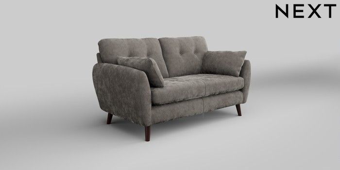 6.12.1 Buy Wilson Buttoned Back 2 Seater Sofa Distressed Velour French Grey Retro Tapered - Dark Brown from the Next UK online shop Click here to use our accessible website