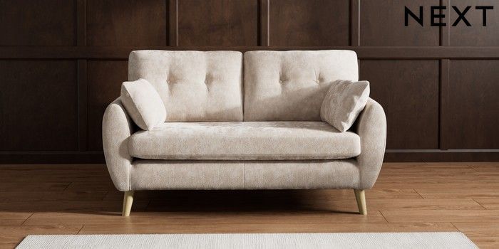 7.2.10 Buy Wilson Buttoned Back 2 Seater Sofa Distressed Velour Mid Natural Retro Tapered - Light from the Next UK online shop Click here to use our accessible website