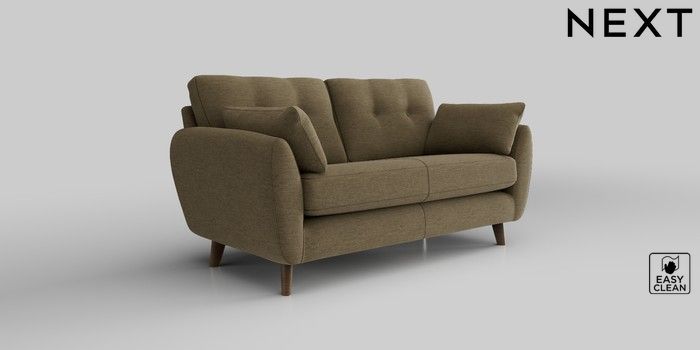 6.12.1 Buy Wilson Buttoned Back 2 Seater Sofa Fine Chenille Easy Clean Dark Moss Green Retro Tapered - Mid from the Next UK online shop Click here to use our accessible website