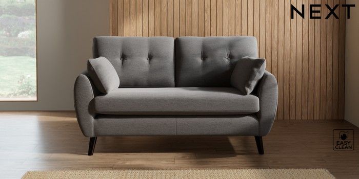 7.2.10 Buy Wilson Buttoned Back 2 Seater Sofa Fine Chenille Easy Clean Dark Smoke Grey Retro Tapered - Dark from the Next UK online shop Click here to use our accessible website