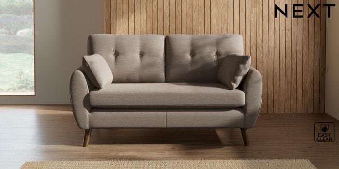 7.2.10 Buy Wilson Buttoned Back 2 Seater Sofa Fine Chenille Easy Clean Mid Taupe Brown Retro Tapered - Mid from the Next UK online shop Click here to use our accessible website