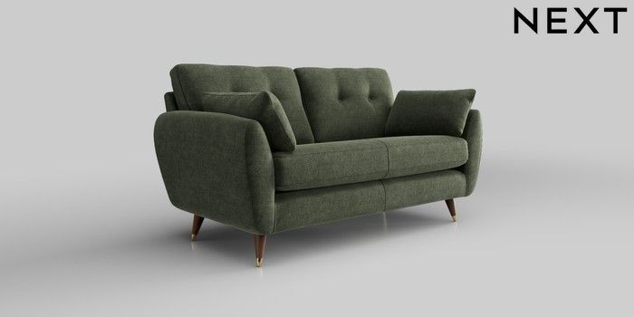6.12.1 Buy Wilson Buttoned Back 2 Seater Sofa Luxe Chenille Mid Green Low Retro Tapered Metal Cap - Mid from the Next UK online shop Click here to use our accessible website