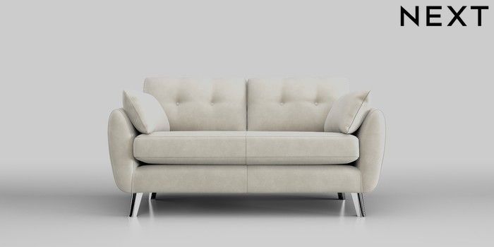 7.0.3 Buy Wilson Buttoned Back 2 Seater Sofa Luxe Chenille Oyster Metal Tapered - Chrome from the Next UK online shop Click here to use our accessible website