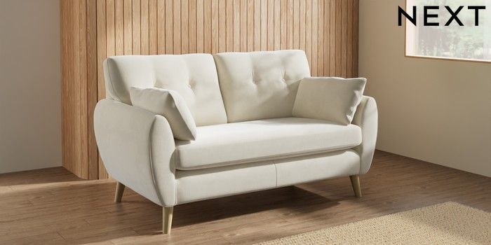 7.3.8 Buy Wilson Buttoned Back 2 Seater Sofa Luxe Chenille Oyster Retro Tapered - Light from the Next UK online shop