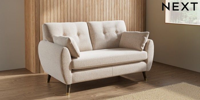 7.3.1 Buy Wilson Buttoned Back 2 Seater Sofa Multi Weave Mid Natural Low Retro Tapered Metal Cap - Mid from the Next UK online shop