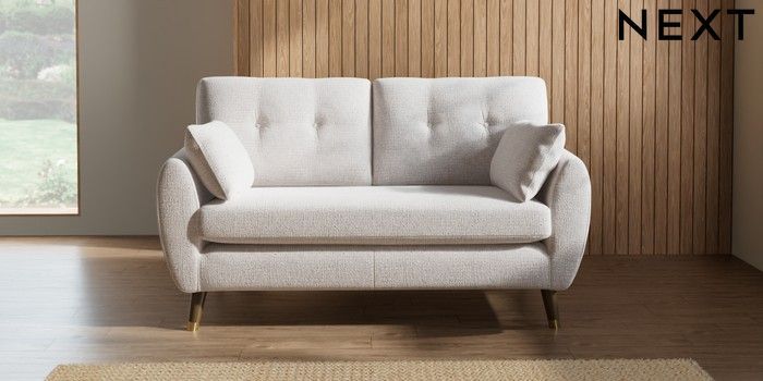 7.2.6 Buy Wilson Buttoned Back 2 Seater Sofa Multi Weave Oyster Low Retro Tapered Metal Cap - Mid from the Next UK online shop Click here to use our accessible website