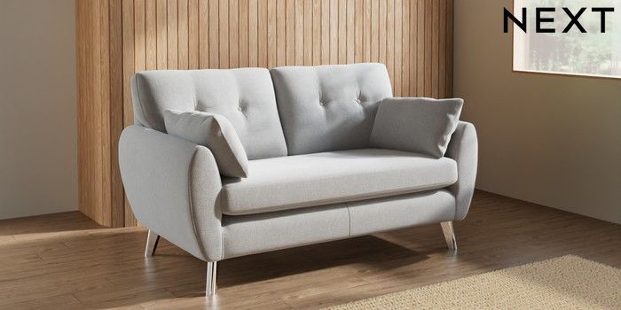7.3.1 Buy Wilson Buttoned Back 2 Seater Sofa Natural Mix Light Grey Metal Tapered - Chrome from the Next UK online shop