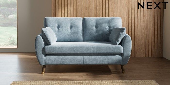 7.2.6 Buy Wilson Buttoned Back 2 Seater Sofa Plush Chenille Light Blue Low Retro Tapered Metal Cap - Mid from the Next UK online shop Click here to use our accessible website