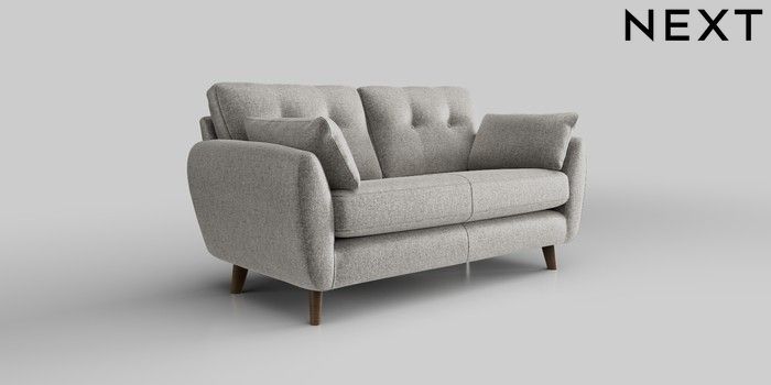 6.12.1 Buy Wilson Buttoned Back 2 Seater Sofa Plush Chenille Light Grey Retro Tapered - Mid from the Next UK online shop Click here to use our accessible website