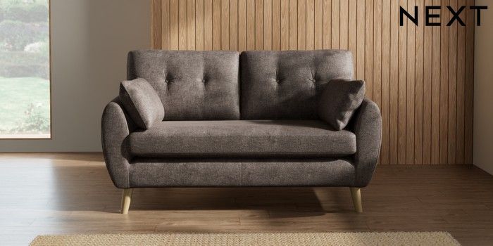 7.2.10 Buy Wilson Buttoned Back 2 Seater Sofa Plush Chenille Mink Brown Retro Tapered - Light from the Next UK online shop Click here to use our accessible website