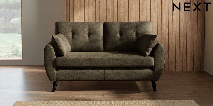 7.2.10 Buy Wilson Buttoned Back 2 Seater Sofa Plush Chenille Moss Green Retro Tapered - Dark from the Next UK online shop Click here to use our accessible website