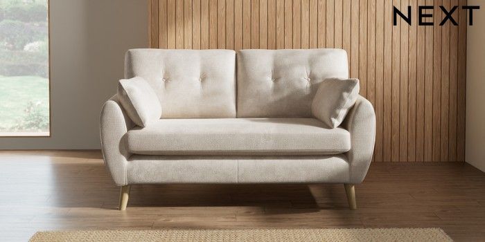 7.2.10 Buy Wilson Buttoned Back 2 Seater Sofa Plush Chenille Oyster Retro Tapered - Light from the Next UK online shop Click here to use our accessible website