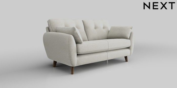 6.12.1 Buy Wilson Buttoned Back 2 Seater Sofa Plush Chenille Oyster Retro Tapered - Mid from the Next UK online shop Click here to use our accessible website