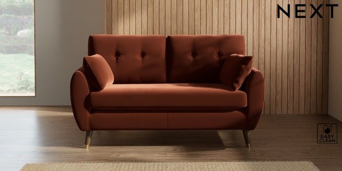 7.3.1 Buy Wilson Buttoned Back 2 Seater Sofa Plush Velvet Easy Clean Ginger Orange Low Retro Tapered Metal Cap - Mid from the Next UK online shop Click here to use our accessible website