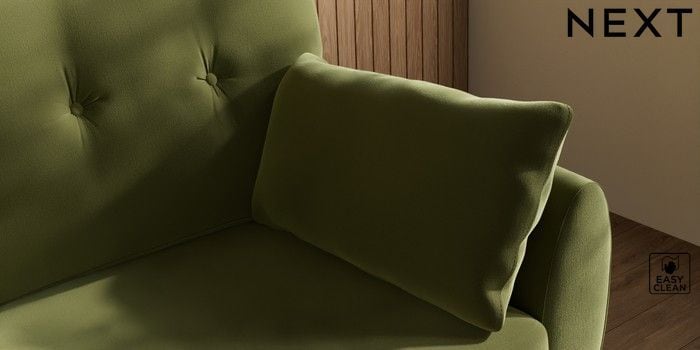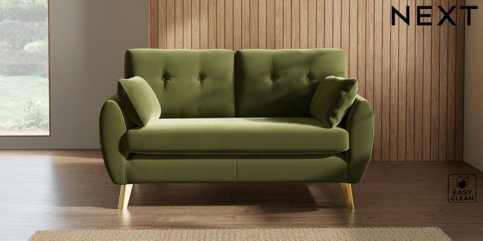 7.3.1 Buy Wilson Buttoned Back 2 Seater Sofa Plush Velvet Easy Clean Mid Olive Green Metal Tapered - Gold from the Next UK online shop Click here to use our accessible website