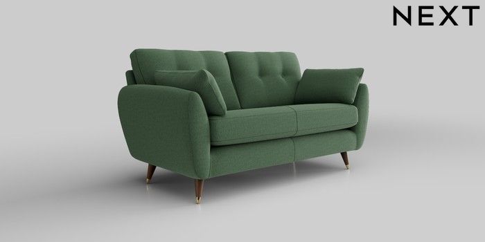 6.12.1 Buy Wilson Buttoned Back 2 Seater Sofa Relaxed Linen Look Dark Green Low Retro Tapered Metal Cap - Mid from the Next UK online shop Click here to use our accessible website