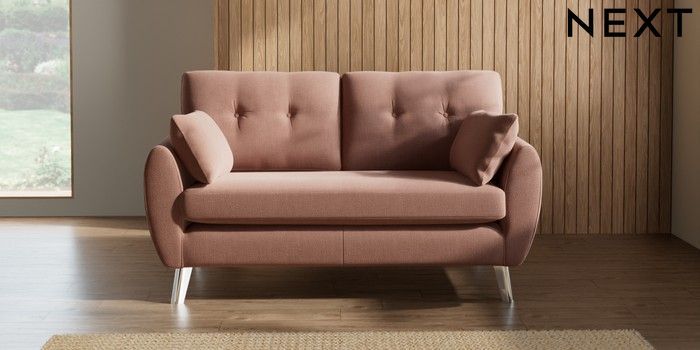 7.2.10 Buy Wilson Buttoned Back 2 Seater Sofa Relaxed Linen Look Light Rust Brown Metal Tapered - Chrome from the Next UK online shop Click here to use our accessible website