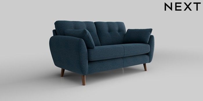 6.12.1 Buy Wilson Buttoned Back 2 Seater Sofa Ripple Chenille Dark Blue Retro Tapered - Mid from the Next UK online shop Click here to use our accessible website