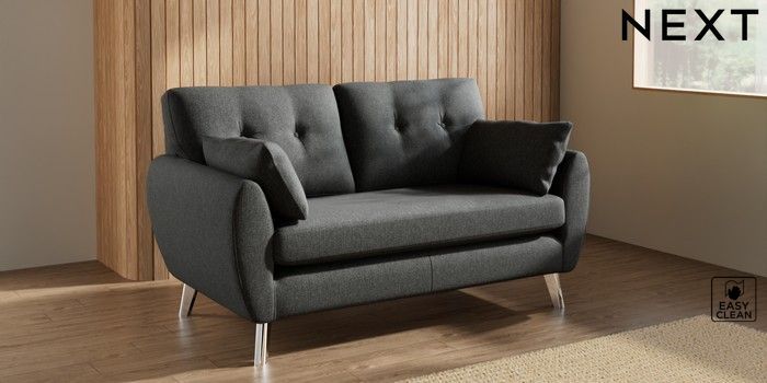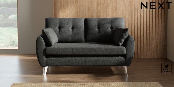 7.3.1 Buy Wilson Buttoned Back 2 Seater Sofa Tweedy Blend Easy Clean Charcoal Grey Metal Tapered - Chrome from the Next UK online shop Click here to use our accessible website