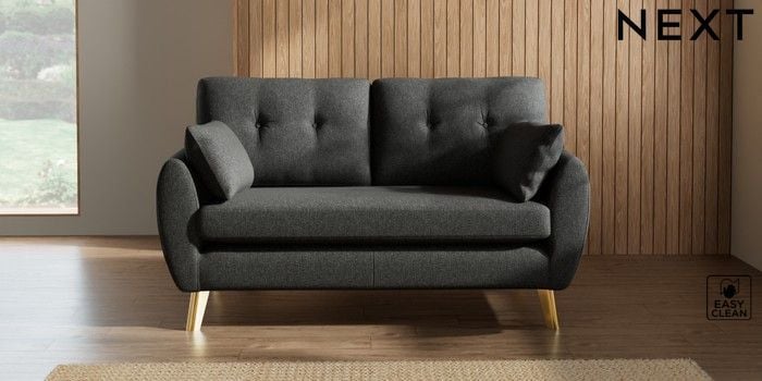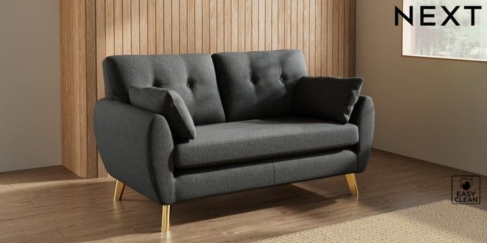 7.3.1 Buy Wilson Buttoned Back 2 Seater Sofa Tweedy Blend Easy Clean Charcoal Grey Metal Tapered - Gold from the Next UK online shop Click here to use our accessible website