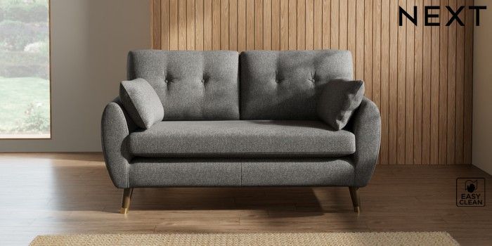7.3.1 Buy Wilson Buttoned Back 2 Seater Sofa Tweedy Blend Easy Clean Dark Grey Low Retro Tapered Metal Cap - Mid from the Next UK online shop Click here to use our accessible website