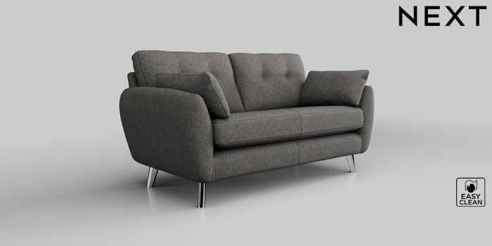 6.12.13 Buy Wilson Buttoned Back 2 Seater Sofa Tweedy Blend Easy Clean Dark Grey Metal Tapered - Chrome from the Next UK online shop Click here to use our accessible website