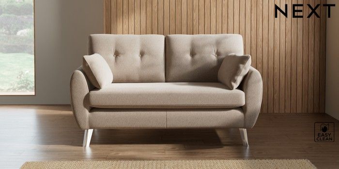 7.3.1 Buy Wilson Buttoned Back 2 Seater Sofa Tweedy Blend Easy Clean Light Dove Natural Metal Tapered - Chrome from the Next UK online shop Click here to use our accessible website
