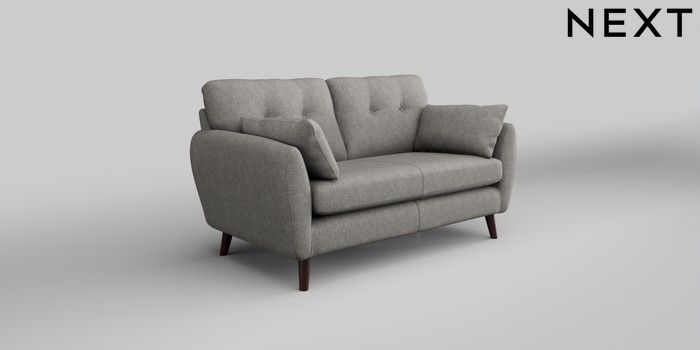 6.12.1 Buy Wilson Buttoned Back 2 Seater Sofa Tweedy Chenille Mid Grey Retro Tapered - Dark Brown from the Next UK online shop Click here to use our accessible website