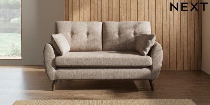 7.2.10 Buy Wilson Buttoned Back 2 Seater Sofa Tweedy Chenille Mid Natural Retro Tapered - Mid from the Next UK online shop Click here to use our accessible website