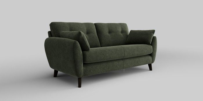 6.12.13 Buy Wilson Buttoned Back 3 Seater Small Sofa Boucle Chenille Dark Moss Green Retro Tapered - Dark from the Next UK online shop Click here to use our accessible website