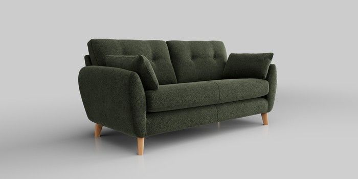 6.12.1 Buy Wilson Buttoned Back 3 Seater Small Sofa Boucle Chenille Dark Moss Green Retro Tapered - Light from the Next UK online shop Click here to use our accessible website