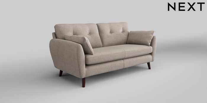 6.12.1 Buy Wilson Buttoned Back 3 Seater Small Sofa Boucle Chenille Light Natural Retro Tapered - Dark Brown from the Next UK online shop Click here to use our accessible website