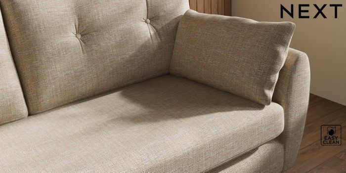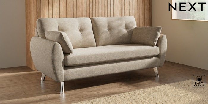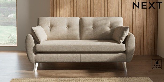 7.3.1 Buy Wilson Buttoned Back 3 Seater Small Sofa Boucle Weave Easy Clean Dark Natural Metal Tapered - Chrome from the Next UK online shop Click here to use our accessible website