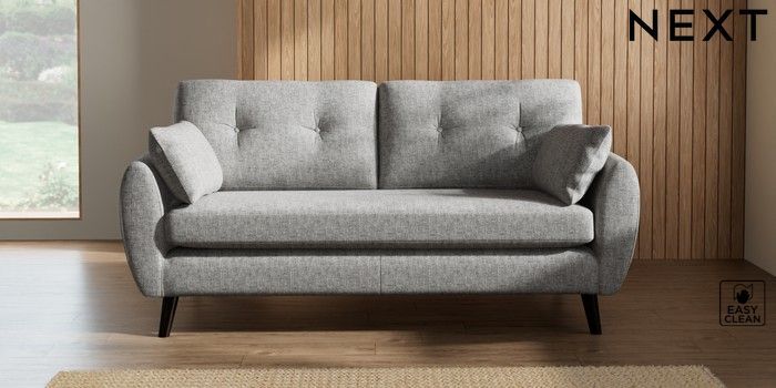 7.2.10 Buy Wilson Buttoned Back 3 Seater Small Sofa Chunky Boucle Easy Clean Light Grey Retro Tapered - Dark from the Next UK online shop Click here to use our accessible website