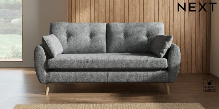 7.2.10 Buy Wilson Buttoned Back 3 Seater Small Sofa Chunky Boucle Easy Clean Mid Grey Retro Tapered - Light from the Next UK online shop Click here to use our accessible website
