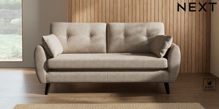 7.2.10 Buy Wilson Buttoned Back 3 Seater Small Sofa Chunky Boucle Easy Clean Mid Natural Retro Tapered - Dark from the Next UK online shop Click here to use our accessible website