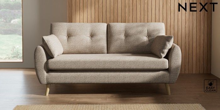7.2.10 Buy Wilson Buttoned Back 3 Seater Small Sofa Chunky Boucle Easy Clean Mid Natural Retro Tapered - Light from the Next UK online shop Click here to use our accessible website