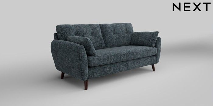 6.12.1 Buy Wilson Buttoned Back 3 Seater Small Sofa Chunky Chenille Dark Navy Blue Retro Tapered - Dark Brown from the Next UK online shop Click here to use our accessible website