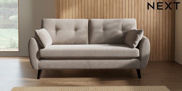 7.2.10 Buy Wilson Buttoned Back 3 Seater Small Sofa Chunky Chenille Light Dove Retro Tapered - Dark from the Next UK online shop Click here to use our accessible website