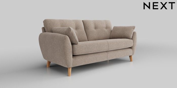 6.12.1 Buy Wilson Buttoned Back 3 Seater Small Sofa Chunky Chenille Light Dove Retro Tapered - Light from the Next UK online shop Click here to use our accessible website