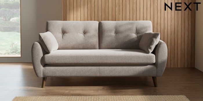 7.2.10 Buy Wilson Buttoned Back 3 Seater Small Sofa Chunky Chenille Light Dove Retro Tapered - Mid from the Next UK online shop Click here to use our accessible website