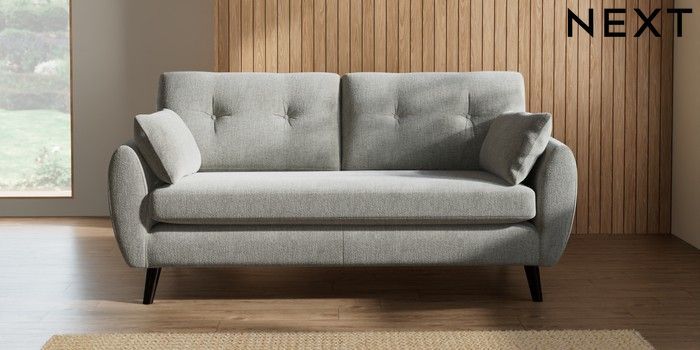 7.2.10 Buy Wilson Buttoned Back 3 Seater Small Sofa Chunky Chenille Light Grey Retro Tapered - Dark from the Next UK online shop Click here to use our accessible website