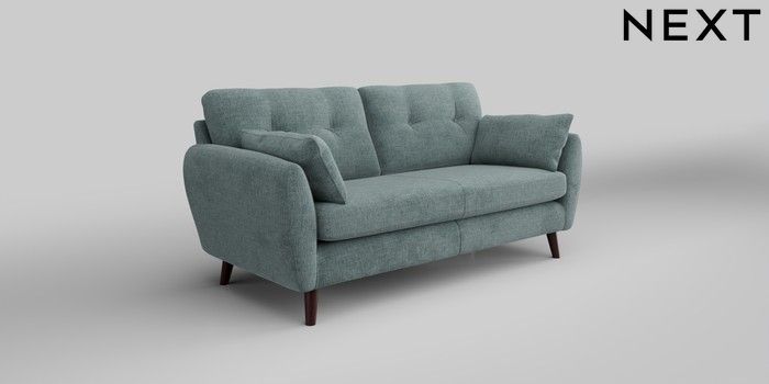 6.12.1 Buy Wilson Buttoned Back 3 Seater Small Sofa Chunky Chenille Light Teal Green Retro Tapered - Dark Brown from the Next UK online shop Click here to use our accessible website